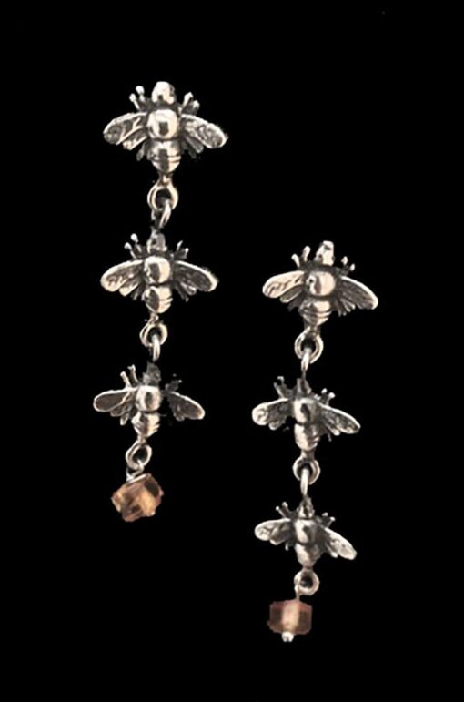 Sterling silver and amber post earrings with bee design