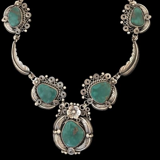 Handmade sterling silver and Sonora Mexico turquoise necklace