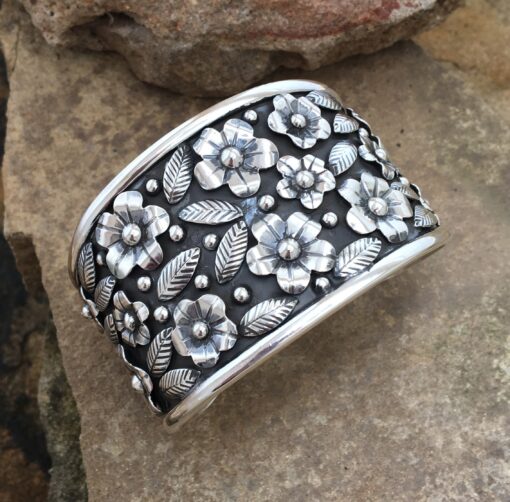 Flower and Leaf Sterling Silver Cuff