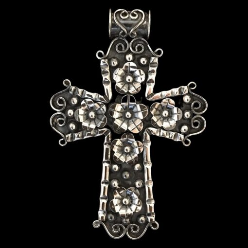 Unique oxidized flower cross pendant with sterling silver and tube bail