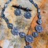 Half Bead Sterling Silver Necklace set with Post Earrings. Box Catch for Closure. 20″ Matching Bracelet in Separate listing