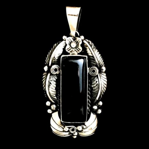 Unique, handmade sterling silver onyx floral pendant