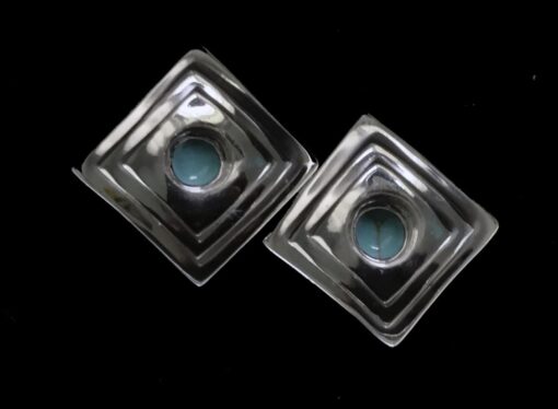 / Sterling Silver Stacked Square Turquoise Post Earring