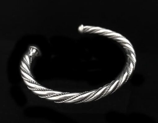 Sterling silver traditional twist wire cuff bracelet with beautiful polished ends.